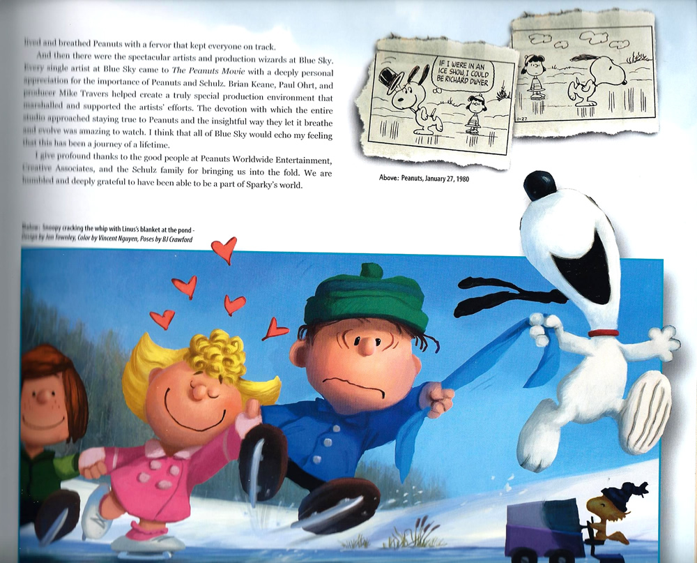 The animation techniques used on this film are very interesting: they just applied the 3D to the environments and characters’ bodies, but their features are 2D to make them more relatable to the source material, and the results are nothing short of stunning. They even made the decision to alternate the timings in “twos and threes”, to match the 2D specials made by Bill Melendez, using a technique called “ghost limbs” to emulate the motion blur used by the animators on those shows.This book is a must for both fans and animation enthusiast since it illustrates the journey and incredible effort that went into making this film possible.